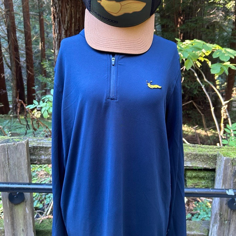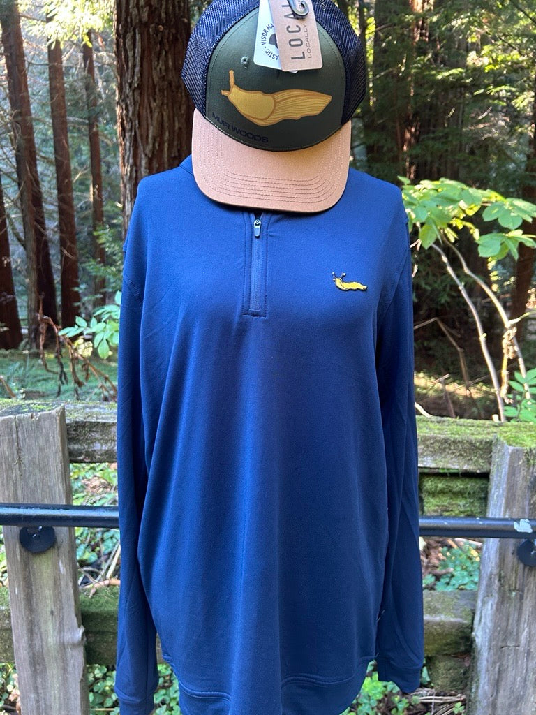 Meet your new favorite layer—the Banana Slug Quarter Zip in classic navy blue. This unisex pullover features a comfortable quarter-zip design that's perfect for layering through changing seasons. Built for adventure seekers and nature lovers alike, it pairs effortlessly with everything in your closet.